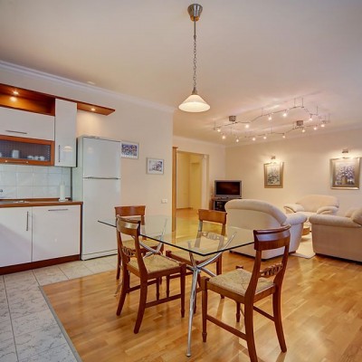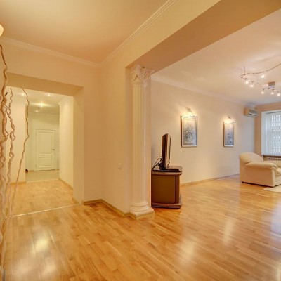 Uno spazioso appartamento trilocale (128mq) nel cuore della città di San Pietroburgo, a pochi passi dalla Nevsky prospekt. L'appartamento si trova alsesto piano ed è composto da due camere da letto (in ognuna vi è un letto matrimoniale), soggiorno (divano-letto) combinato con cucina e 2 bagni (doccia e jacuzzi). L'appartamento è comodo e silenzioso e renderà indimenticabile la vostra vacanza nella capitale del nord. La via Malaya Sadovaya è una via pedonale piena di caffetterie, ristoranti e negozi. Sono raggiungibili a piedi le principali attrazioni come le Cattedrali di Sant'Isacco e di Kazan, il monumento di Caterina la Grande, la Piazza del Palazzo e l'Ermitage. Come gli altri appartamenti a San Pietroburgo permette di vivere la città in totale libertà e di raggiungere a piedi tutti i monumenti storici. L´appartamento è dotato di tutto il necessario per una vacanza veramente confortevole. Vi è la connesisone a Internet Wi-Fi.