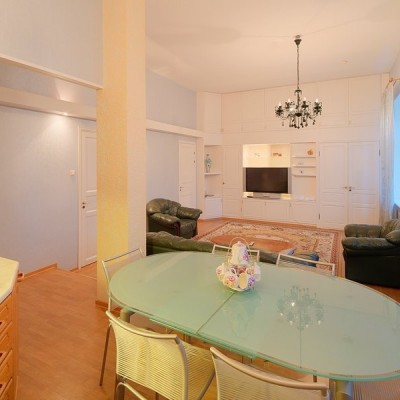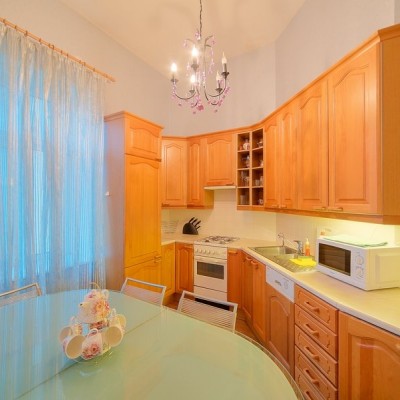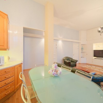 Questo comodo appartamento trilocale si trova in pieno centro storico sulla via pedonale Malaya Konyushennaya e a circa 300m dalla via principale - Nevsky Prospect, 650m dalla Chiesa del Salvatore sul Sangue Versato e Giardino Mikhailovsky, 700m - Museo Russo e circa 800m dalla Piazza del Palazzo (Museo Ermitage). E' un'ottima scelta per una famiglia o un piccolo gruppo di amici che viaggiano insieme. L'appartamento è di 100mq ed è composto da due camere da letto, soggiorno, cucina e bagno con jacuzzi. E' completamente arredato e ha tutto il necessario per un indimenticabile soggiorno nella capitale del nord. Pantofole monouso, articoli per l'odontoiatria, cuffie per la doccia, set di rasoi in omaggio.