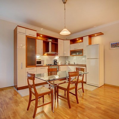 Uno spazioso appartamento trilocale (128mq) nel cuore della città di San Pietroburgo, a pochi passi dalla Nevsky prospekt. L'appartamento si trova alsesto piano ed è composto da due camere da letto (in ognuna vi è un letto matrimoniale), soggiorno (divano-letto) combinato con cucina e 2 bagni (doccia e jacuzzi). L'appartamento è comodo e silenzioso e renderà indimenticabile la vostra vacanza nella capitale del nord. La via Malaya Sadovaya è una via pedonale piena di caffetterie, ristoranti e negozi. Sono raggiungibili a piedi le principali attrazioni come le Cattedrali di Sant'Isacco e di Kazan, il monumento di Caterina la Grande, la Piazza del Palazzo e l'Ermitage. Come gli altri appartamenti a San Pietroburgo permette di vivere la città in totale libertà e di raggiungere a piedi tutti i monumenti storici. L´appartamento è dotato di tutto il necessario per una vacanza veramente confortevole. Vi è la connesisone a Internet Wi-Fi.
