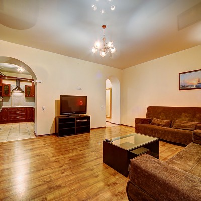 Spazioso appartamento bilocale (75mq) a San Pietroburgo, vicino all´Ermitage e alla Nevsky Prospect, una delle più famose vie della città. L'appartamento permette di accomodare fino a 6 persone, ha un letto matrimoniale nella camera da letto e due divani matrimoniali nel soggiorno. La cucina e il bagno sono completamente attrezzati. Vi è la connesisone a Internet Wi-Fi. L'ingresso nel palazzo è da un cortile chiuso, vi è la portineria 24 ore. Sia in estate durante il periodo delle notti bianche, sia durante il romantico inverno russo, soggiornare nei nostri appartamenti a San Pietroburgo, permette di vivere una vacanza indimenticabile.