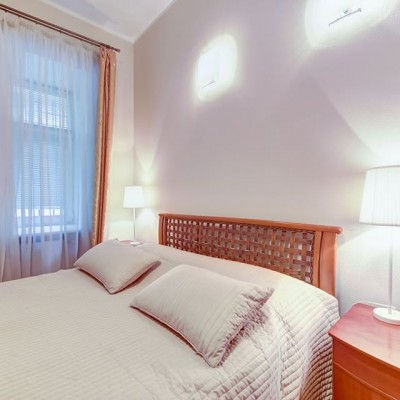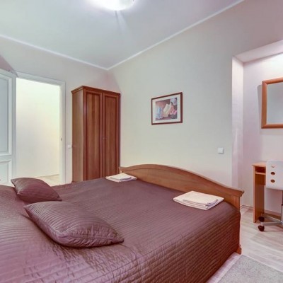 Appartamento trilocale (86mq) molto bello e moderno si trova in posizione fantastica di fianco al Museo Ermitage, uno dei musei più importanti al mondo. A pochi minuti si trova anche il Grand Hotel Europe di San Pietroburgo. L'appartamento è adatto per 6 persone, ha due camere da letto e il soggiorno. Entrambe le camere da letto hanno un letto matrimoniale e un capiente armadio. Il divano nel soggiorno può essere usato come letto per due persone. La cucina è attrezzatissima, con piano cottura, lavatrice, forno a microonde, bollitore. Vi è la connesisone a Internet Wi-Fi. Questo appartamento si trova lungo il famoso canale Moika, una via ricca di magnifiche case e palazzi. L'appartamento è un punto di partenza perfetto per passeggiate romantiche nel cuore di San Pietroburgo.