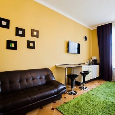 Un apart-hotel in pieno centro, sulla via principale della città, la Nevsky Prospekt. L'appartamento (32mq) è adatto per 4 persone (un letto matrimoniale 200x220 e divano-letto 150x200). A distanza pedonale vi sono diverse attrazioni turistiche, bar, ristoranti e negozi. Nell’angolo cucina ci sono frigorifero,forno a microonde, toaster e la macchina da caffè con filtro.Sul piano vi è una grande cucina completamente attrezzata e la lavanderia. Vi è la connesisone a Internet Wi-Fi.